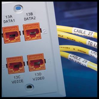 布線標(biāo)記的設(shè)計(jì)方案以《商業(yè)建筑物電信基礎(chǔ)結(jié)構(gòu)管理標(biāo)準(zhǔn)》"(TI刃EIA606標(biāo)準(zhǔn))為依據(jù)。粘貼型標(biāo)簽、插入型標(biāo)簽均應(yīng)符合ULg69(H國(guó)保險(xiǎn)商實(shí)驗(yàn)室,一個(gè)獨(dú)立的、非贏利性質(zhì)的產(chǎn)品安全實(shí)驗(yàn)和認(rèn)證組織)中所規(guī)定的清晰、磨損、附著力以及外露要求。某些信息可以預(yù)先印刷在標(biāo)記位置上,某些信息由安裝人員填寫。如果設(shè)計(jì)人員希望有空白標(biāo)記,也可以訂購(gòu)空白標(biāo)記帶。