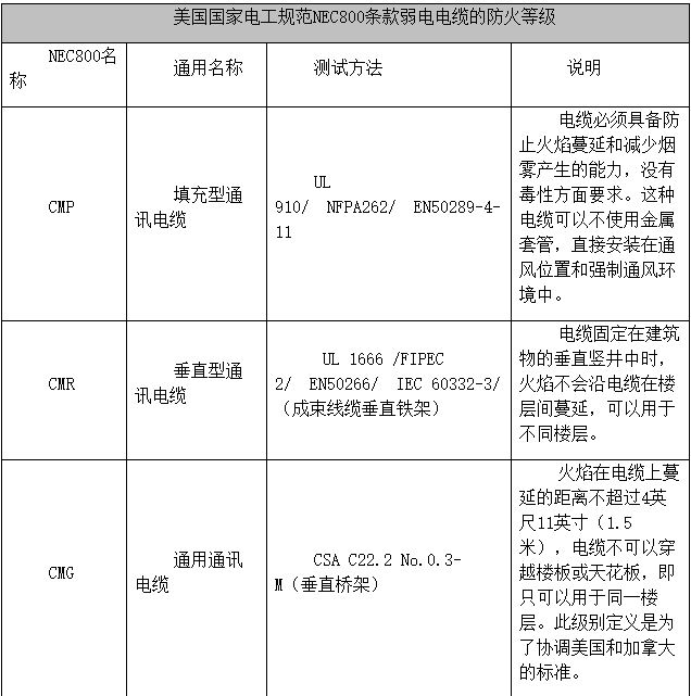 在光纜制造以及建筑電纜制造標準系列中,中國國家標準和部頒標準中,已經(jīng)對;型纜線進行了分類,并有了相關(guān)的防火纜線制造標準。但是,與綜合布線纜線的防火等級和防火應(yīng)用場合分類的國家標準始終沒有出臺。