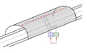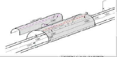 下圖用三維效果圖展示了各種系統(tǒng)在隧道內(nèi)的分布情況:
