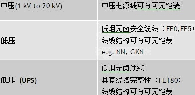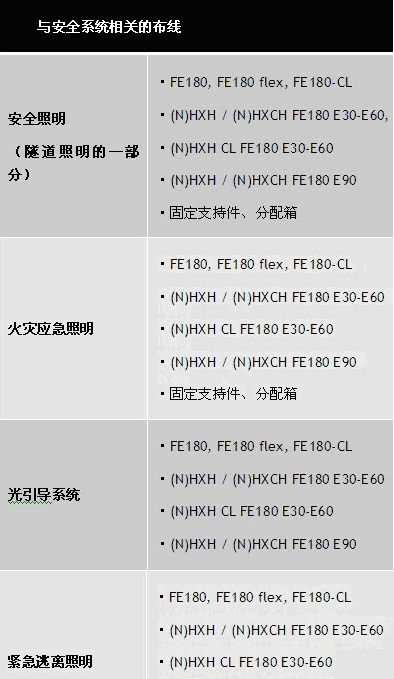 ● 安全纜線,線路完整性等級FE180(適用于安全相關的系統(tǒng)組件和應急電源的連接件)