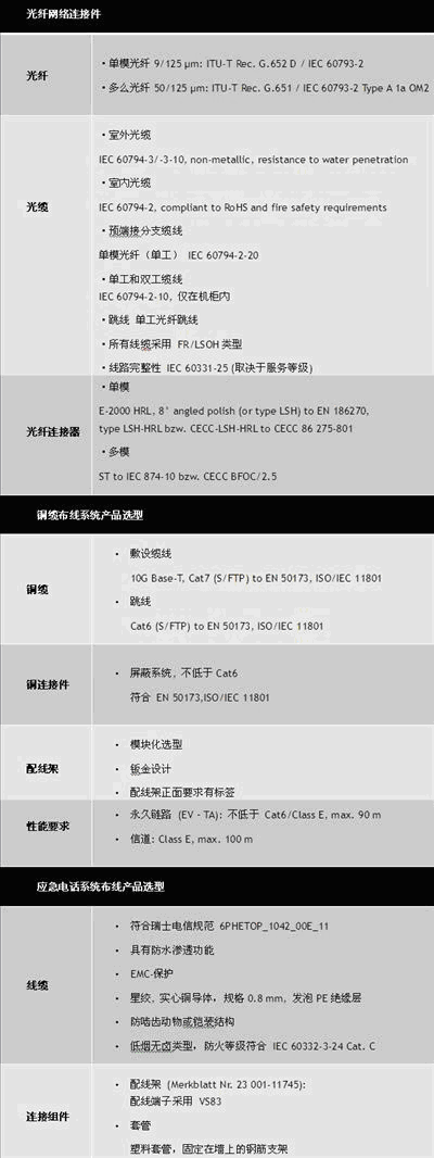 隧道的建筑結(jié)構(gòu)不在本文撰述范圍內(nèi),而僅從運行系統(tǒng)和安全設備的需求出發(fā),并結(jié)合各國的相關標準,整理出相應的布線要求和產(chǎn)品選型。