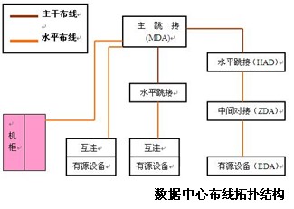 主干布線采用一級星型拓撲結(jié)構(gòu),每個HDA的水平跳接直接與MDA的主跳接相連,不允許有中間跳接;